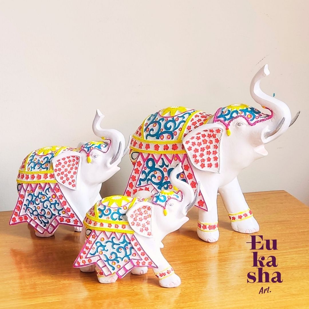 Este conjunto de elefantes pintados a mano es una invitación a llenar tu hogar de energía positiva y significado. Representan la unión familiar, el apoyo incondicional y la fuerza que se multiplica cuando estamos juntos.