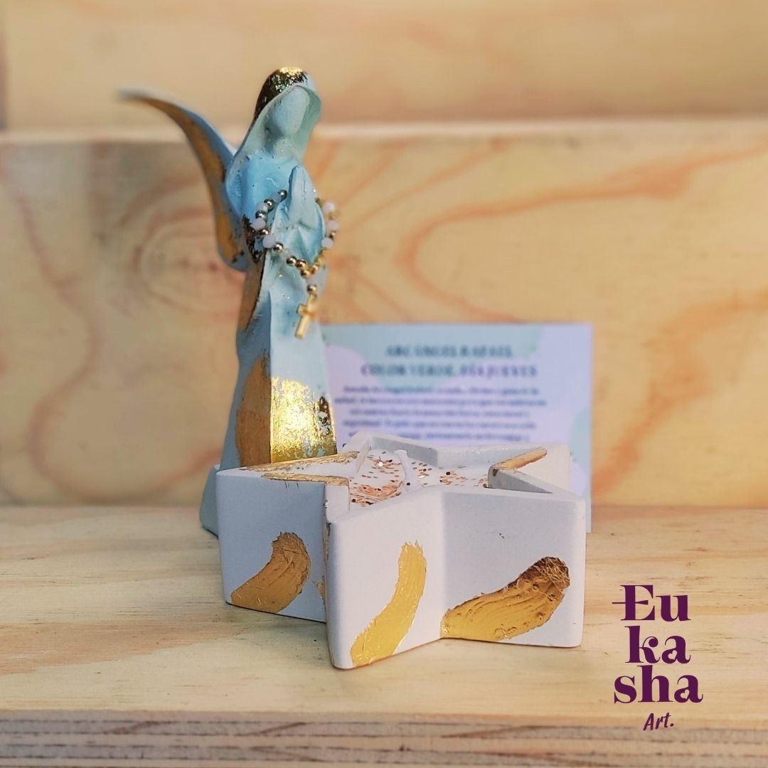 El Arcángel Rafael es conocido como el gran sanador, guardián de la salud y de los caminos espirituales. Su energía simboliza la esperanza, el bienestar y la restauración del cuerpo, la mente y el alma. Contar con su presencia en tu hogar es abrir un espacio a la luz que sana y a la paz que renueva.